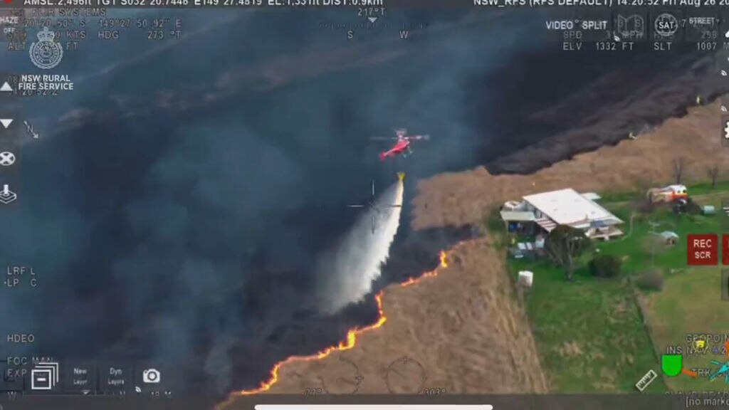 Aircraft assist firefighters to contain a grassfire burning 6km west of Gulgong. (Credit: RFS NSW )