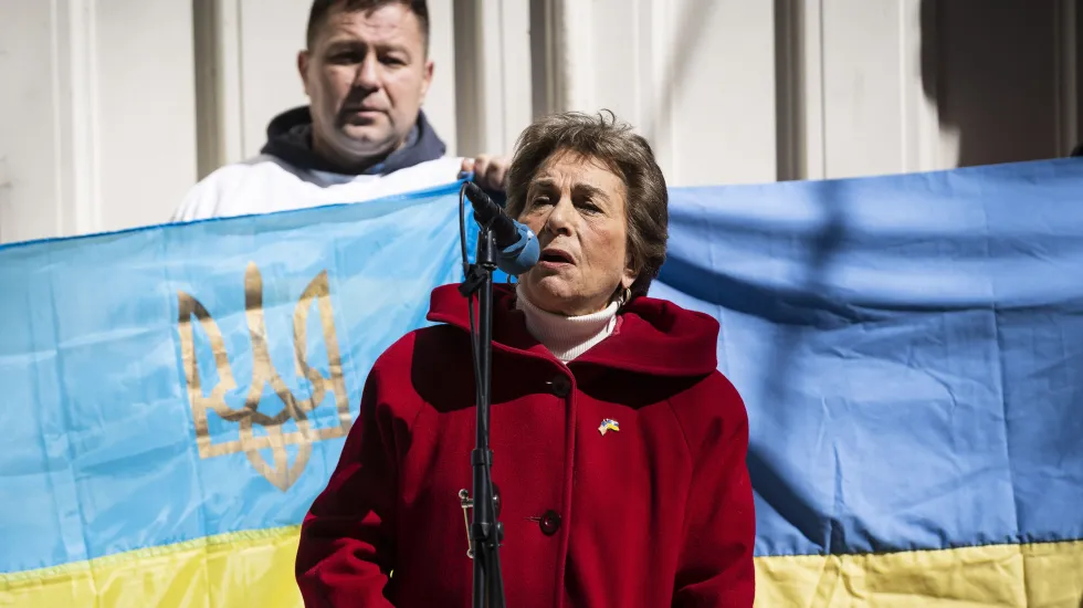 Attendee Larissa Iwankiw, whose sister and other family members are in Ukraine, said she will continue showing up for Ukraine until the war is over.