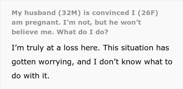 The author of the post is a 26-year-old woman whose husband wrongly believed that she was pregnant one day