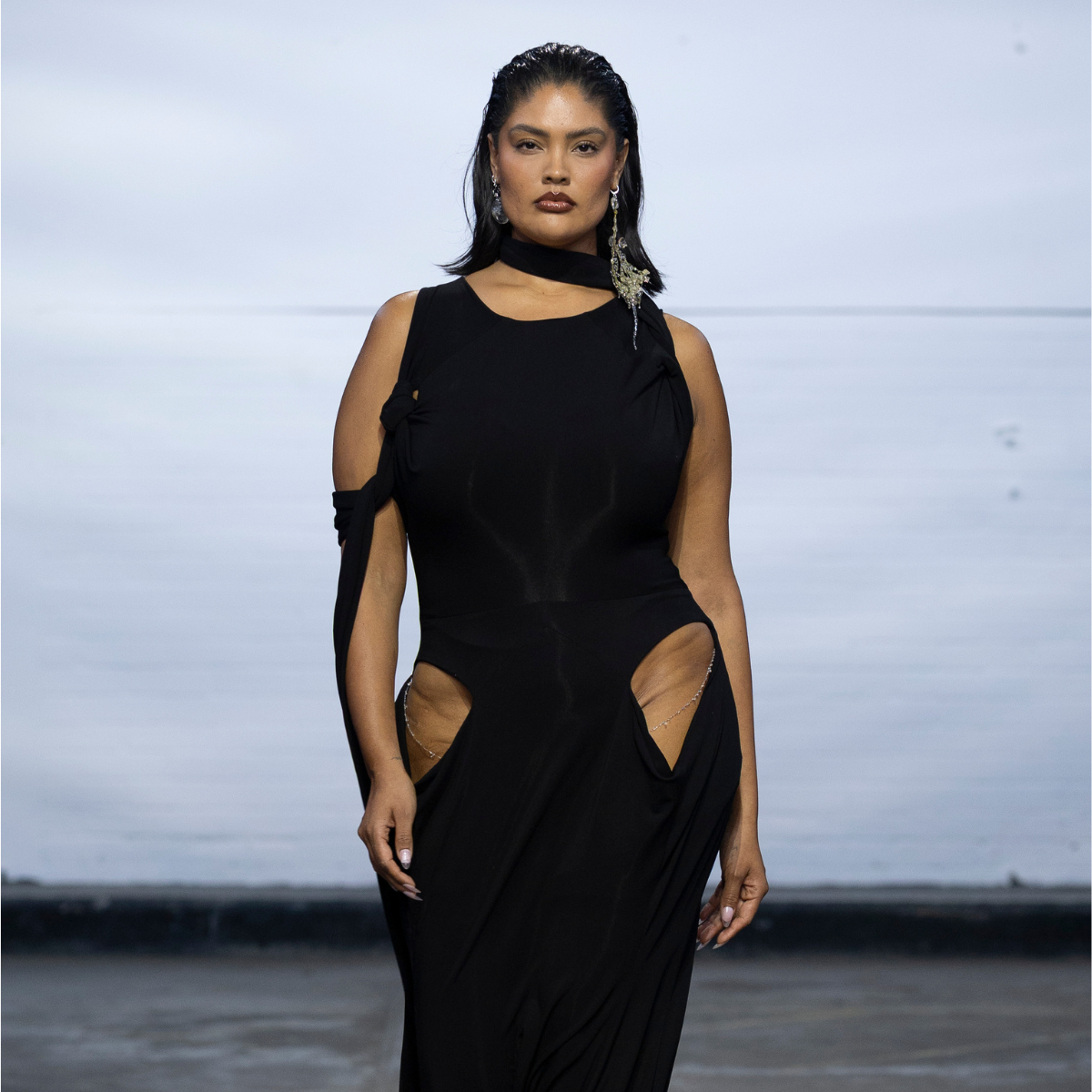 The success of fashion month hinges on the shock of the new, whether that's trends or names-to-know. But while the clothes might shift from season to season, with different references, silhouettes, colour palettes and moods, there's a habit that's harder to change: casting. Karoline Vitto, one of the most exciting talents at London Fashion Week, put it best in her press release with its deadpan opening question: "'Where did all the curve models go?,' the headlines asked. Nowhere. The weight of body diversity should not rest on a handful of designers. But with Karoline Vitto and her contemporaries taking a step back over the past couple seasons for one reason or another, it felt like curve model casting had all but frozen over." Hers was a show that drew on silhouettes from the '90s and 'early '00s, "minus the heroin chic body ideals," cleverly adapting toxic standards of the past into something that did not demonise but celebrated, with a teardrop cut-out placed over the hip bone in one instance that gave its gown exquisite oomph.