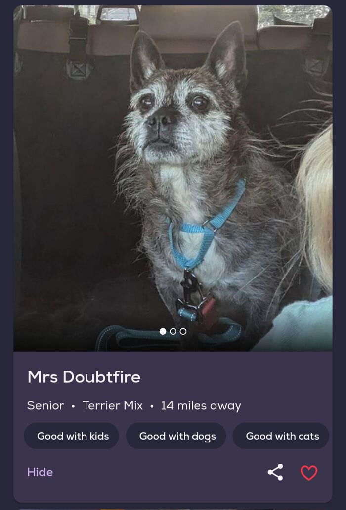 “I started this account as a silly little thing on the side. I spend so much time browsing Petfinder and started to see some hilarious names, and I thought they would be fun to share!" they told Bored Panda earlier.