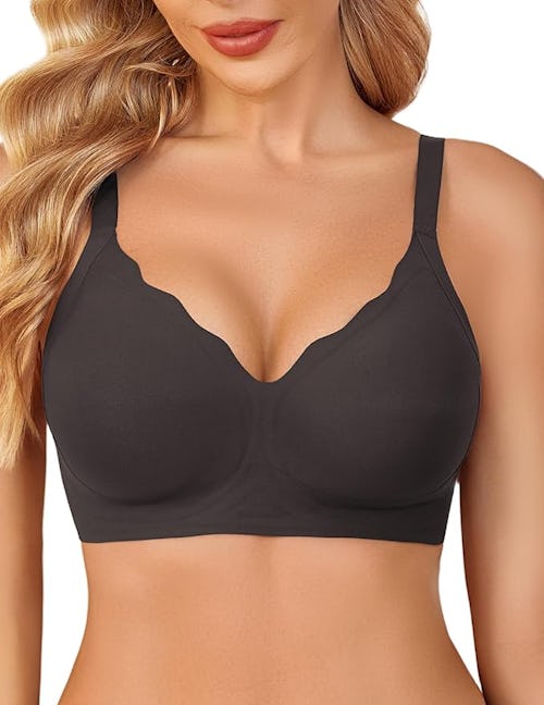 If you think you have to sacrifice bra support for comfort, you’ve clearly never met this adjustable seamless bralette. It has a jelly strip on the sides and built-in padding that work together to offer a secure feel without the use of an underwire. Plus, the buttery soft fabric makes it as comfortable as your favorite sports bra. It also has a gorgeous scalloped design that looks cute and expensive.