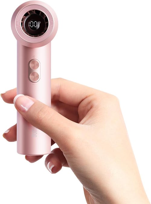 A handheld fan with 5 blades & high-speed turbo airflow
