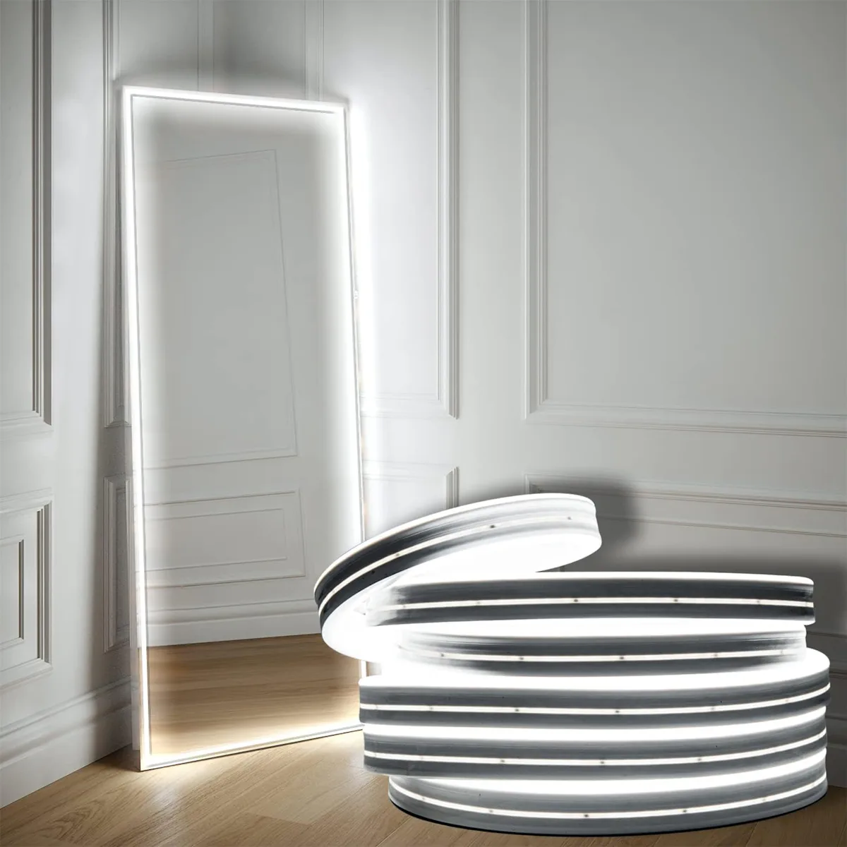 Turn your everyday mirror into a glam getting-ready zone with this LED strip light. With a side-emitting design, the lights are designed to create an even halo effect without harsh hotspots. The dimmable touch control lets you adjust intensity, while the flexible silicone casing makes shaping and installation simple. It’s designed to mount around mirrors for a clean, Hollywood-stye finish.