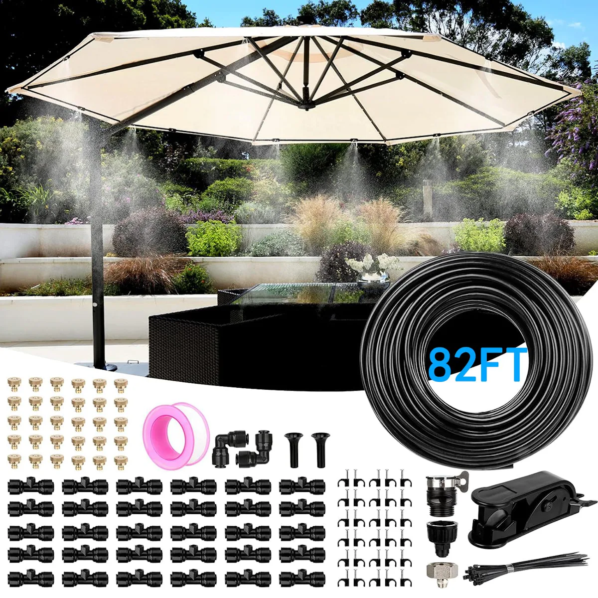 This misting system connects to a standard garden hose and creates a fine cooling mist designed to lower surrounding temperatures by up to 20 degrees Fahrenheit. The brass nozzles are made to resist rusting and clogging, and the flexible UV-resistant tubing can be wrapped around patios, pergolas, trampolines, greenhouses, and more. And there’s no electricity required to operate.