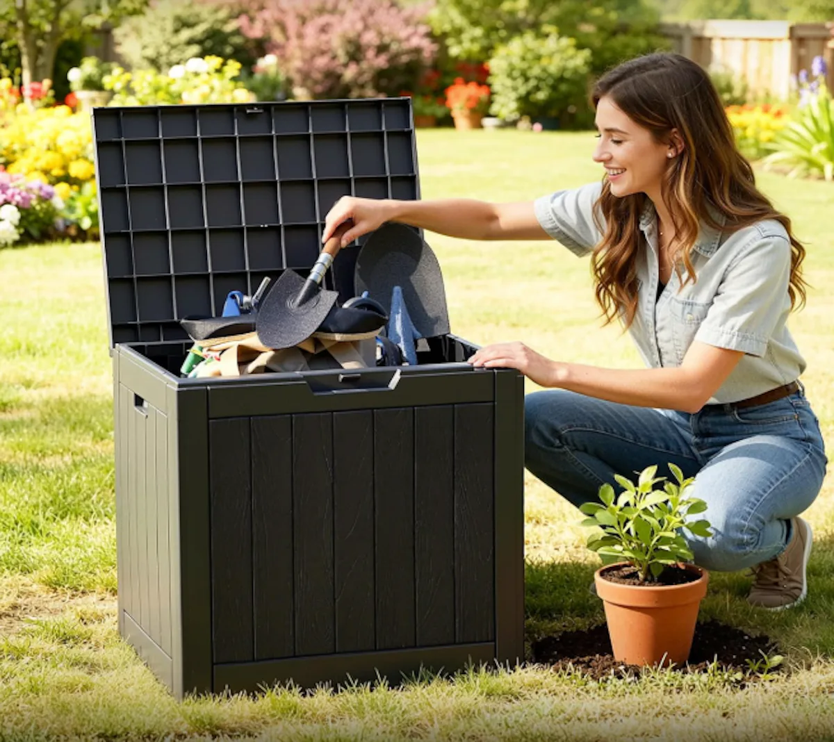 A tidy patio is a happy patio, and this outdoor storage box makes it easy. The weatherproof resin construction is built for sun and moisture, while the built-in side handles make it simple to move around when you’re rearranging things. Assembly is designed to be tool-free, and the lid can be secured with a lock for extra peace of mind.