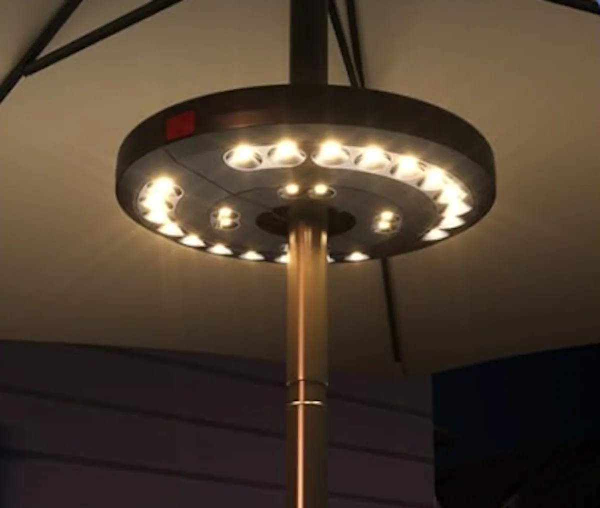 When the sun dips but the party’s not over, this 28-LED umbrella light keeps everything glowing. It clips onto umbrella poles with a built-in adjustable clamp — no tools, no fuss. You get three brightness levels in a warm tone that aims to be cozy, not blinding. The light is USB rechargeable and can run up to 10 hours per charge. It even has a battery indicator, so you’ll know exactly when it needs topping up.