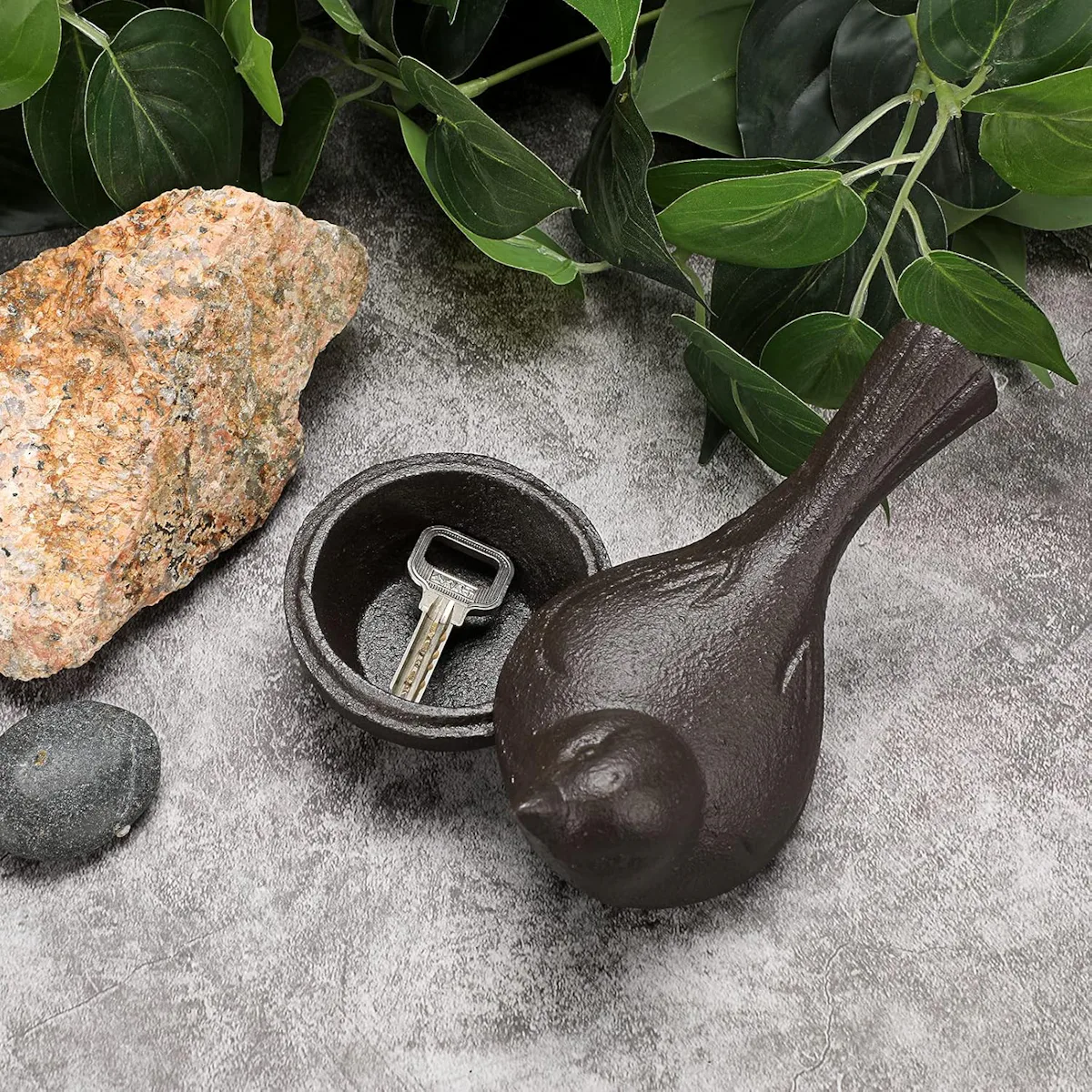 For a secretive spare key spot, get this cast iron bird statue that doubles as a trinket box-style key hider. It has a sturdy, weighted build that’s less likely to shift in wind or get knocked over by curious critters. It’s also handy indoors for small essentials like rings, screws, paper clips, and more.