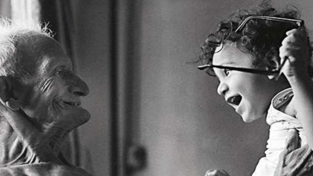 Reclining on the bed, the old man stares at his grandson’s scribbles on a wall. On another, he spots a sheet of paper where the little one had revised his algebra equations. There are toys left behind in his room. Covered in cobwebs and dust, they lie unattended. Almost like fossils. They are completely cast away for months till a day comes when the child in him turns the key to make a clown clap. At that moment, the old man becomes a metaphor for grandparents who helplessly fumble with emptiness.