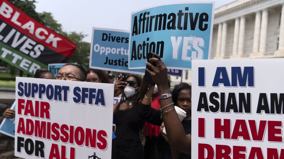 “On its face, that sends a kind of message that … certain students don’t belong,” said Christian Perry, policy director for the Illinois advocacy group Partnership for College Completion. “If, on the front end, I’m being told as a diversity scholar that is receiving merit because of the hardship I’ve experienced, due to racism and structural inequality in this country, … ‘Oh, sorry, nevermind,’ that could have really, really, really damaging effects.”