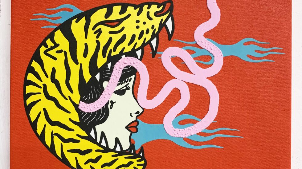 “The tongues coming out is like they’re telling a story or giving you advice,” Franco says. “They’re saying something. But it’s up to the viewer to see what are they saying.”