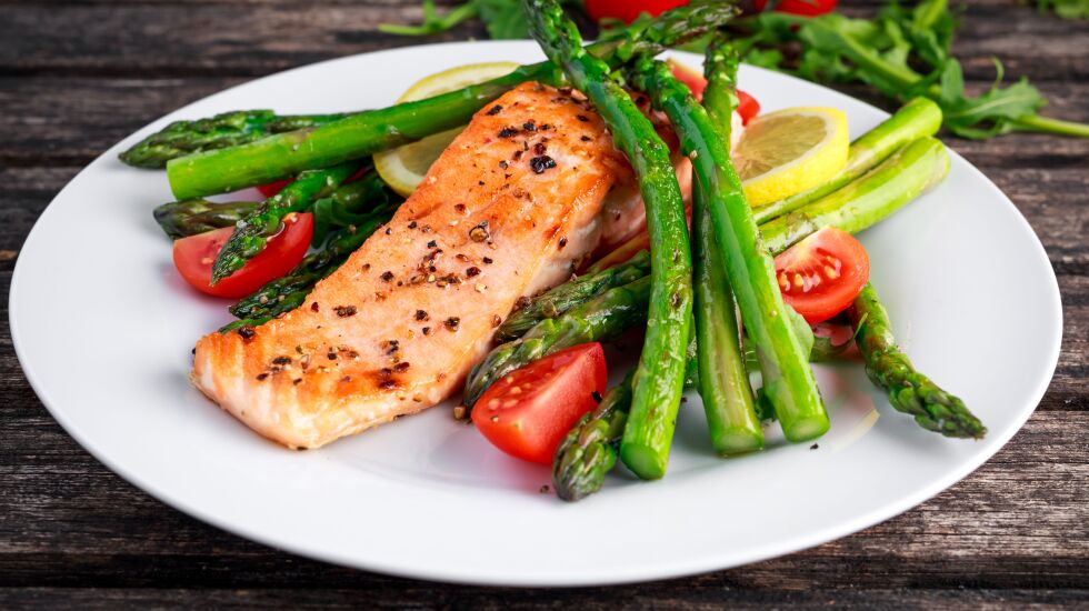 Champagne said breakfast could include an olive oil spread on whole-wheat toast and possibly an egg. A dinner of salmon with pilaf and a large portion of stir-fried vegetables could work, she said. Pastas should be whole grain. And people who don’t enjoy lots of olive oil can find healthy fats in nuts or avocados.