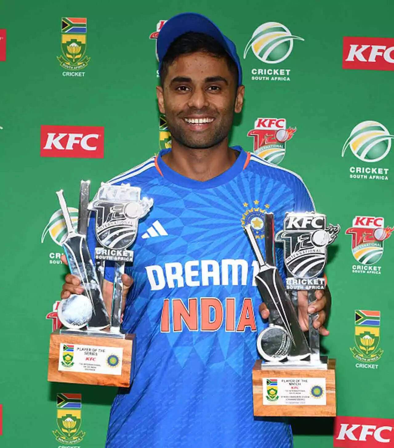 In the third and last T20I of the series at Johannesburg, India were put into bat by South Africa and leading from the front as captain, Suryakumar reached his fifty off 32 balls and his fourth T20I hundred off just 55 balls.