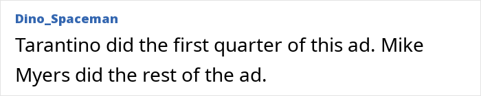 “Written and directed by Quentin Tarantino,” one commented on the ad, while another said, “Tarantino did the first quarter of this ad. Mike Myers did the rest of the ad.”