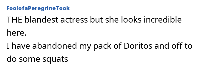 “THE blandest actress but she looks incredible here. I have abandoned my pack of Doritos and off to do some squats,” said another, while another quipped, “She’s my favourite nepo baby in the industry.”