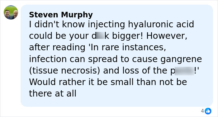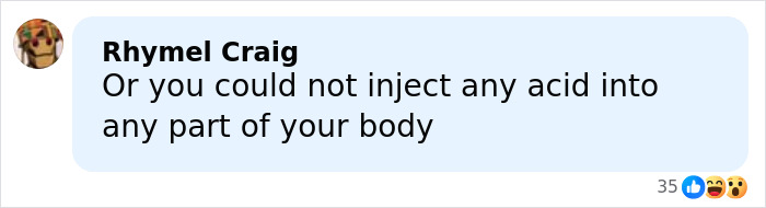 The medical reality surprised many online observers, as one wrote, “Hyaluronic acid is what I put on my face to give it moisture and plumpness, so it makes sense,” while another responded in disbelief with, “Excuse me? They are doing what in their what?”