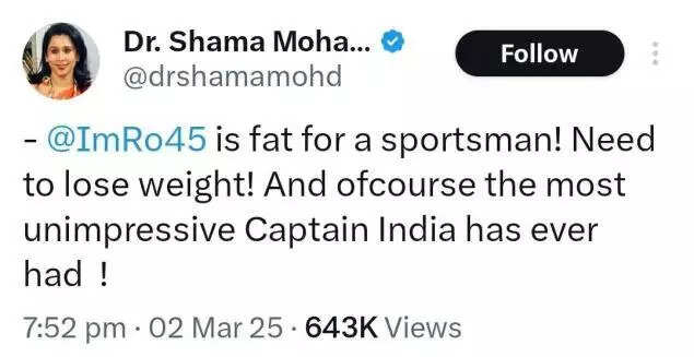 Rohit Sharma, one of cricket’s finest batters, faces similar scrutiny. For years, he has been the subject of memes linking him to vada pav, Mumbai’s beloved street snack. His relaxed demeanour and walk to the crease make him relatable, but they have also led to unfair judgments about his fitness. Recently, Congress spokesperson Dr. Shama Mohamed reignited the debate with remarks about Rohit’s physique, sparking backlash.