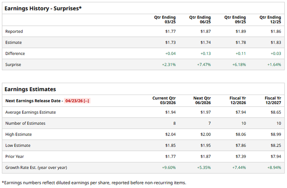 For fiscal 2026, analysts forecast the REIT to report core FFO per share of $7.94, up 7.4% from $7.39 in fiscal 2025. In addition, core FFO per share is anticipated to grow 8.9% year-over-year to $8.65 in fiscal 2027.