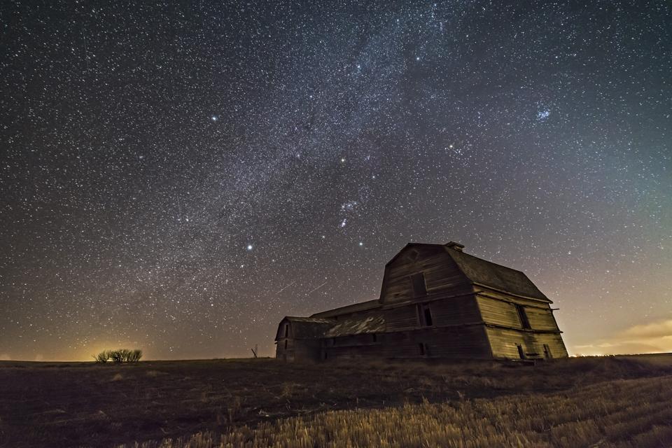 Look at the image above. It’s of the southern sky as taken from the northern hemisphere at this time of year. See that bright “smudge” top-right? That’s the Pleiades, a cluster of stars 440 light-years distant that’s also called the “Seven Sisters.” Just above the house is the famous Belt of Orion. Draw a line from the Pleiades to Orion’s Belt and keep going and you’ll come to Sirius, the brightest star in the northern sky. It’s a mere 8.6 light-years distant.