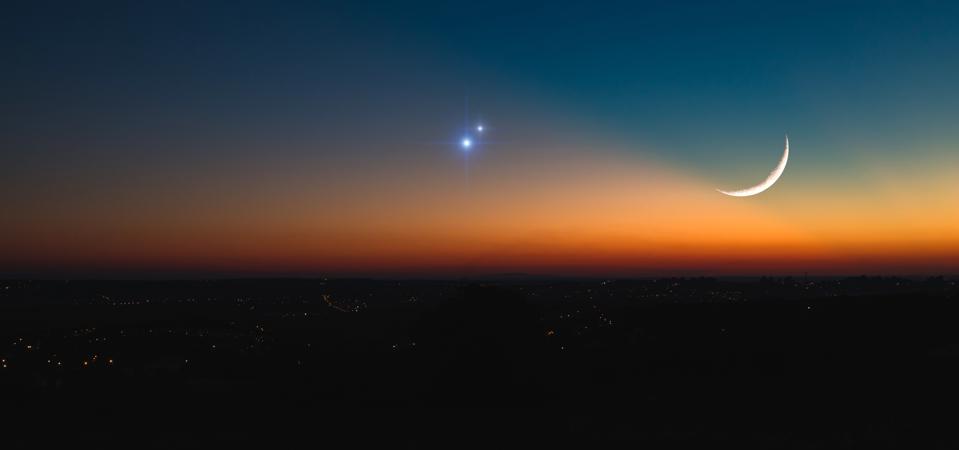 Saturday, March 26, 2022: A planetary triangle and a crescent Moon