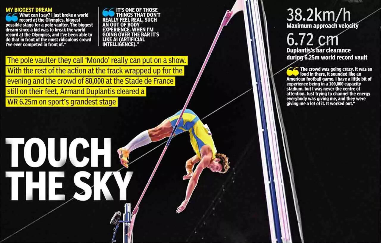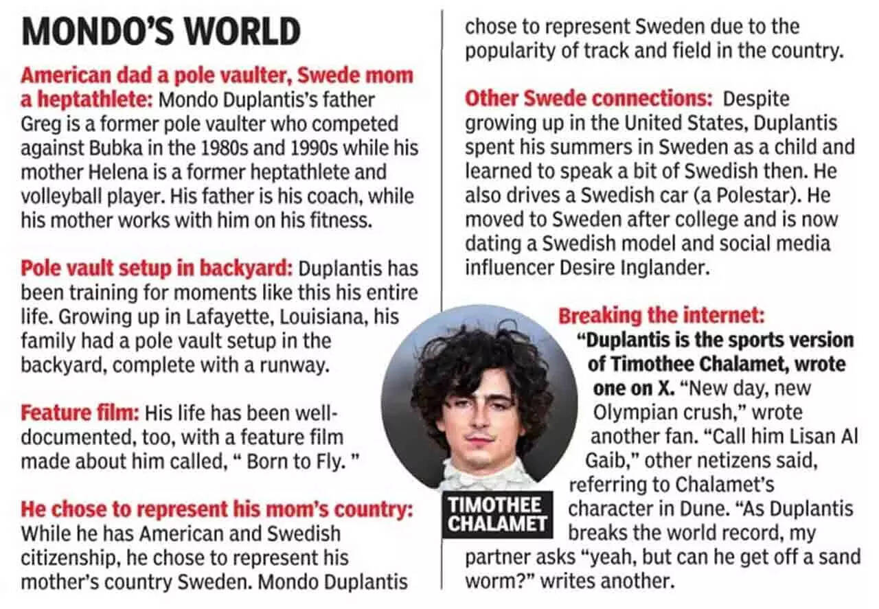PARIS: It was a high-voltage atmosphere at the Stade-de-France on Monday night, one pole vault superstar Armand Duplantis compared with an American football game. The stage was set for the world's most flamboyant athlete, popular as Mondo, to not only defend his title but also better his own world mark on the brand new track.
