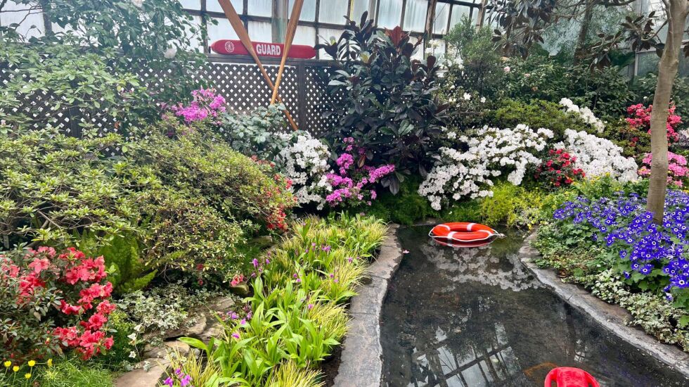 The conservatory’s spring flower show takes advantage of cooler-toned flowers, such as cineraria and snapdragons, to match Lake Michigan. Look for nods to lakefront staples such as passing boats and the iconic Chicago Harbor lighthouse.
