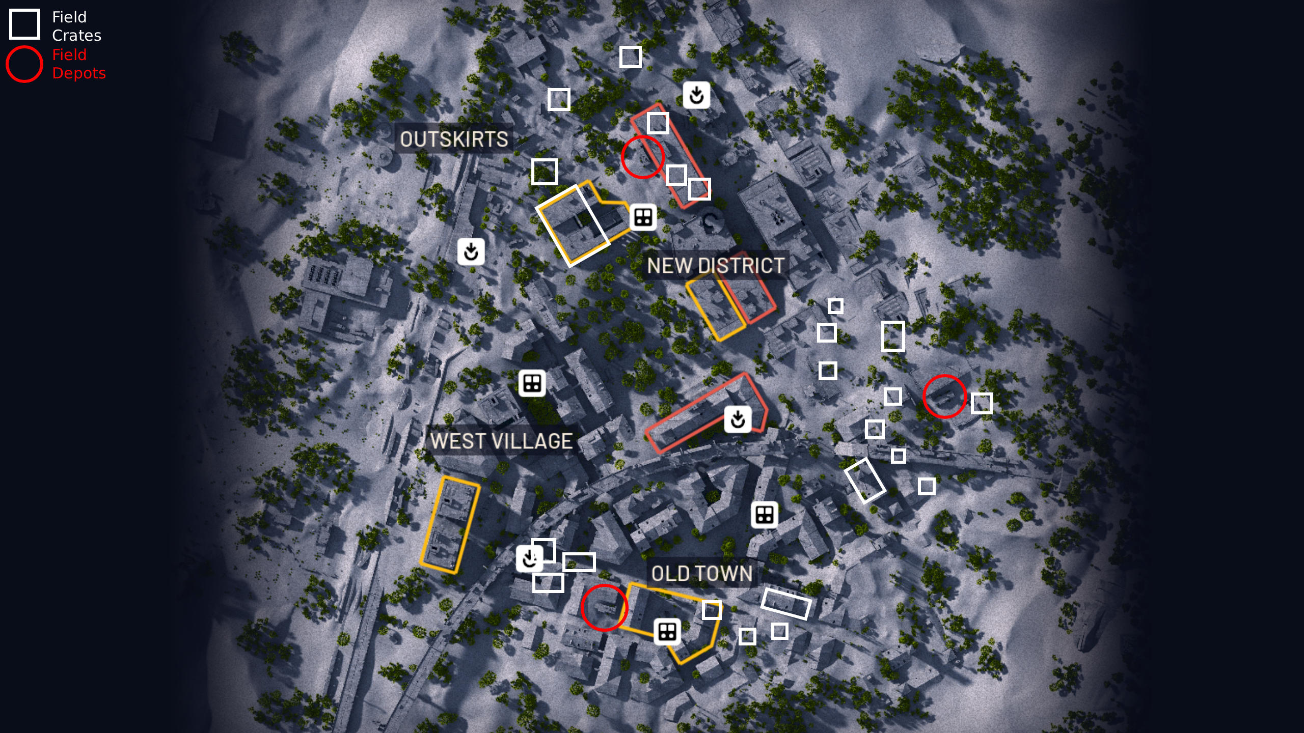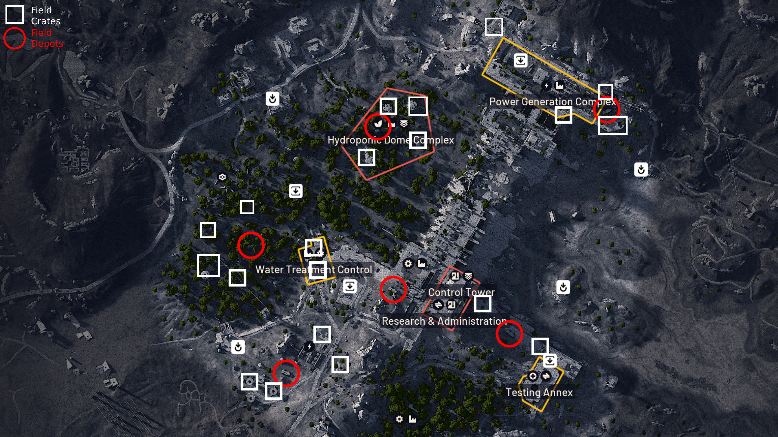 Below, I've made annotated maps showing all the Field Depot and crate locations on Dam Battlegrounds, Buried City, and Spaceport so you can complete them when you come across them.