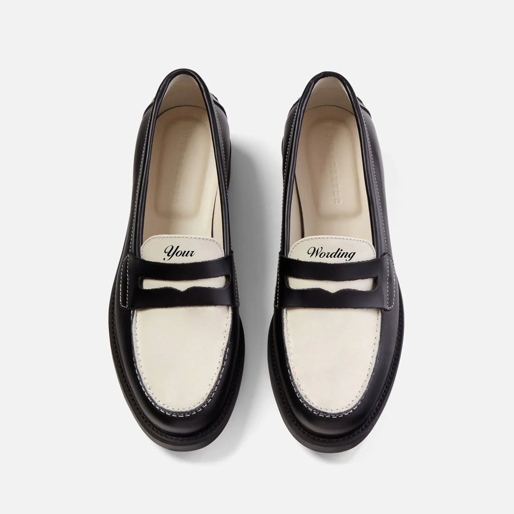 Claudia's loafers feature the words 'faithful' on one foot and 'traitor' on the other. For £400, you can write whatever you want on yours. Know someone who's getting married? You could put their new name on there.