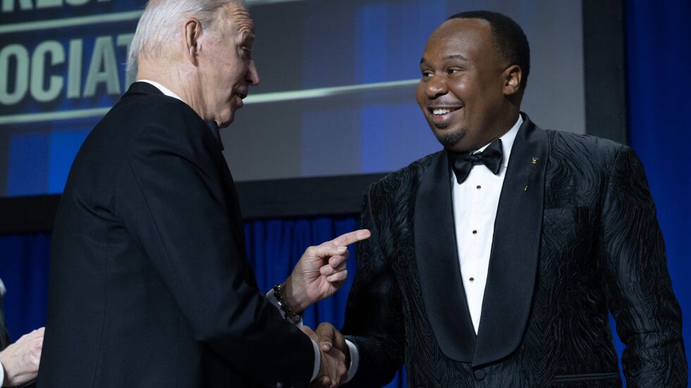 WASHINGTON — In a 21-minute White House Correspondents’ Association dinner routine on Saturday night — about equal parts of serious and shtick — President Joe Biden made jokes about his age, called for the release of detained journalists and paid tribute to pioneering journalism in Chicago that led to the modern civil rights era.
