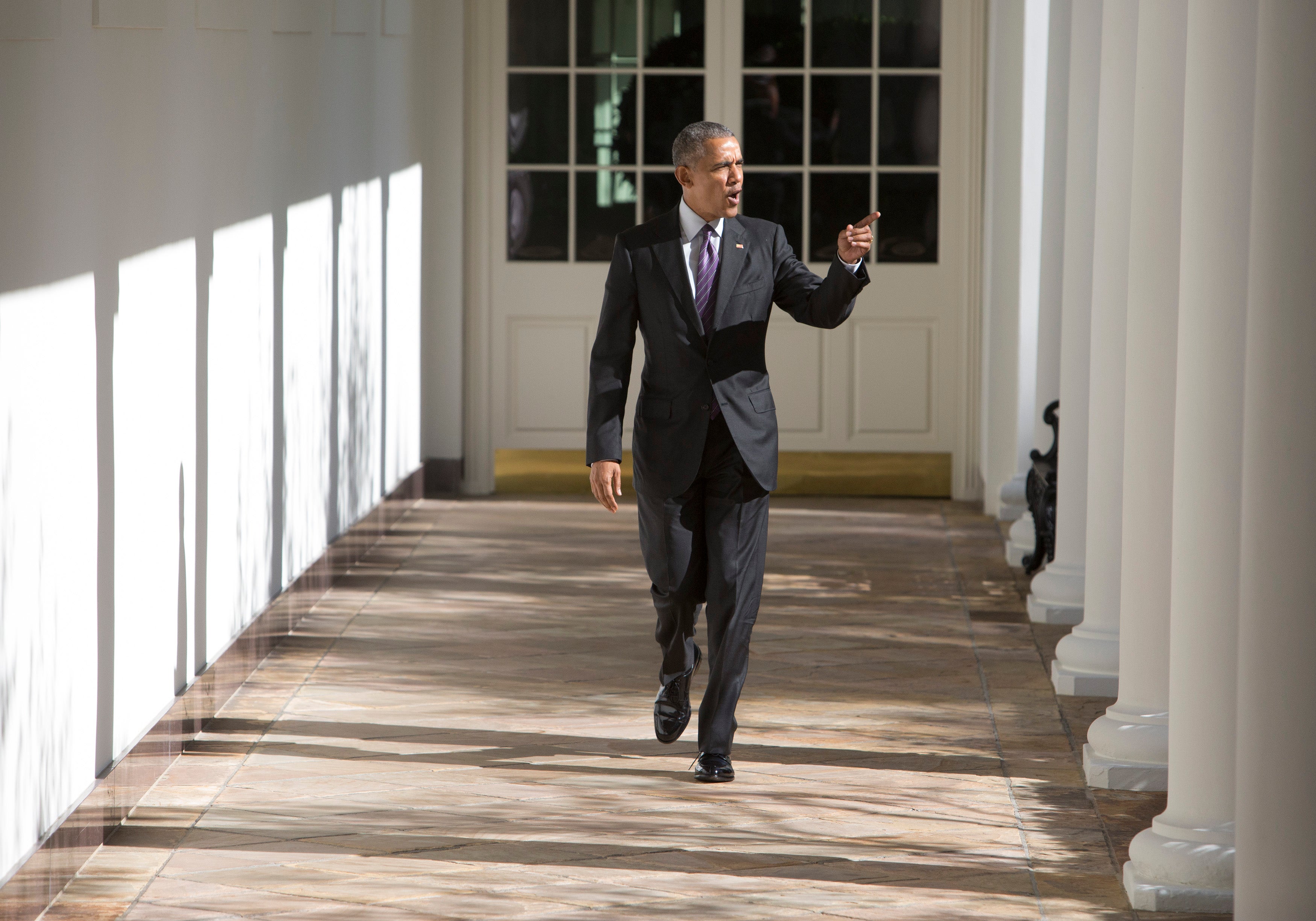 On the iconic colonnade that covers the path Trump uses to get from the White House residence to the West Wing each day, Trump has installed photos of each of his predecessors — plus two for each of his and Grover Cleveland’s two non-consecutive terms — as part of what he calls the “Presidential Walk of Fame.”