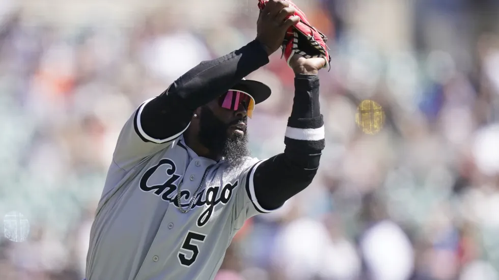 Harrison, playing third base, jumped over left fielder Andrew Vaughn and tumbled to the ground after making a long running catch of Jose Ramirez’ pop fly in the fifth.