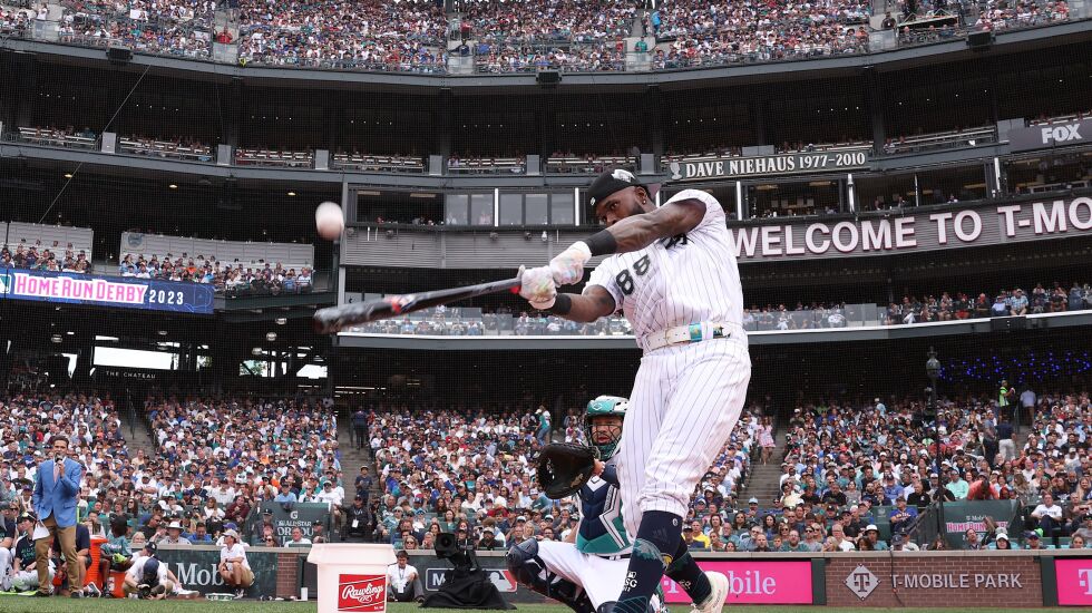 Robert lasted two rounds in the Derby, topping the Orioles’ Adley Rutschman before losing to the Rays’ Randy Arozarena. Along with the Rangers’ Adolis Garcia, Arozarena helped convince Robert — their fellow Cuban — to participate in the annual exhibition.