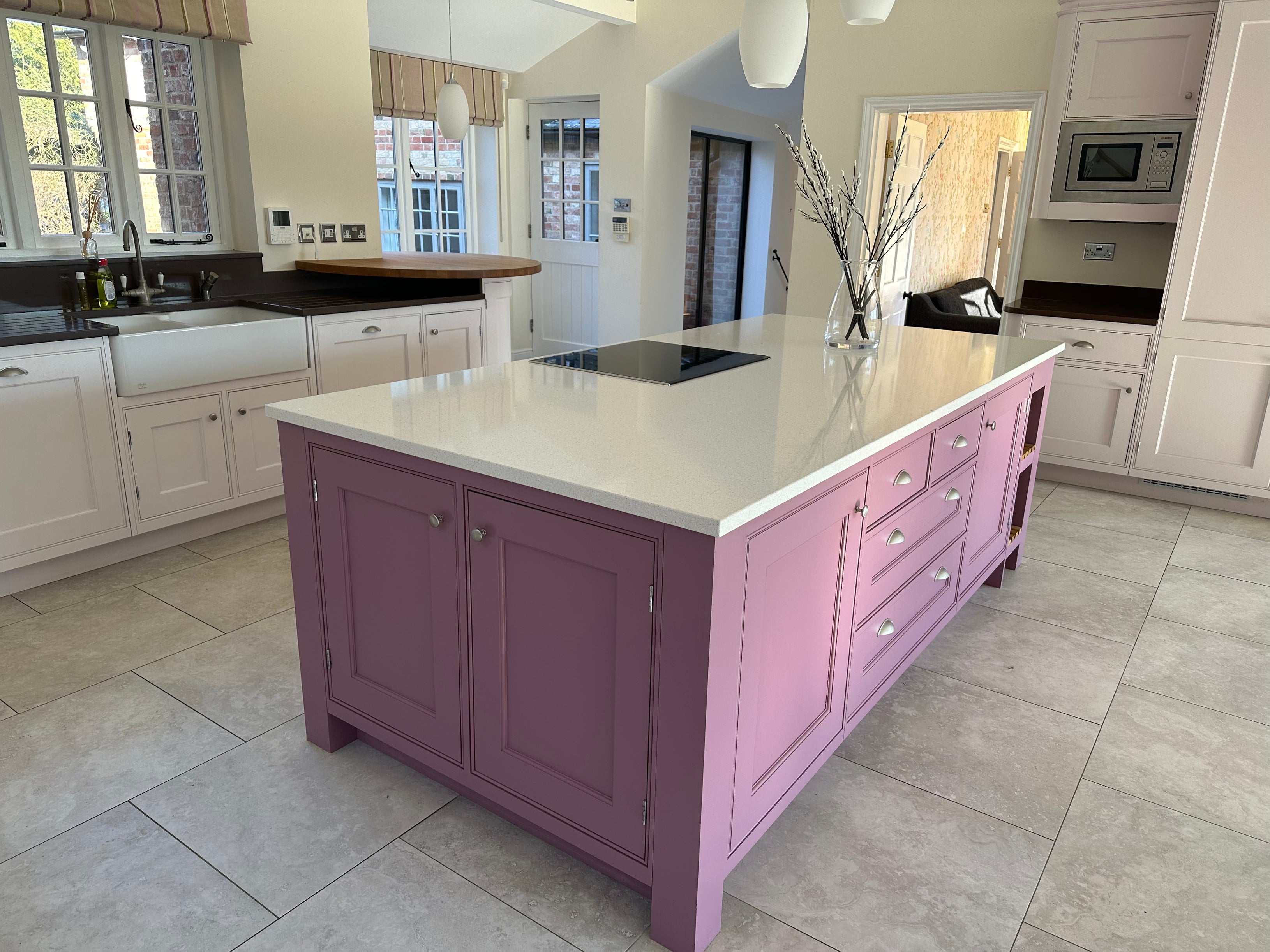 Painted kitchens also open up your tile and worktop choices, highlights Grossman. “From wood to striking quartz, composite or porcelain worktops – all pair beautifully.