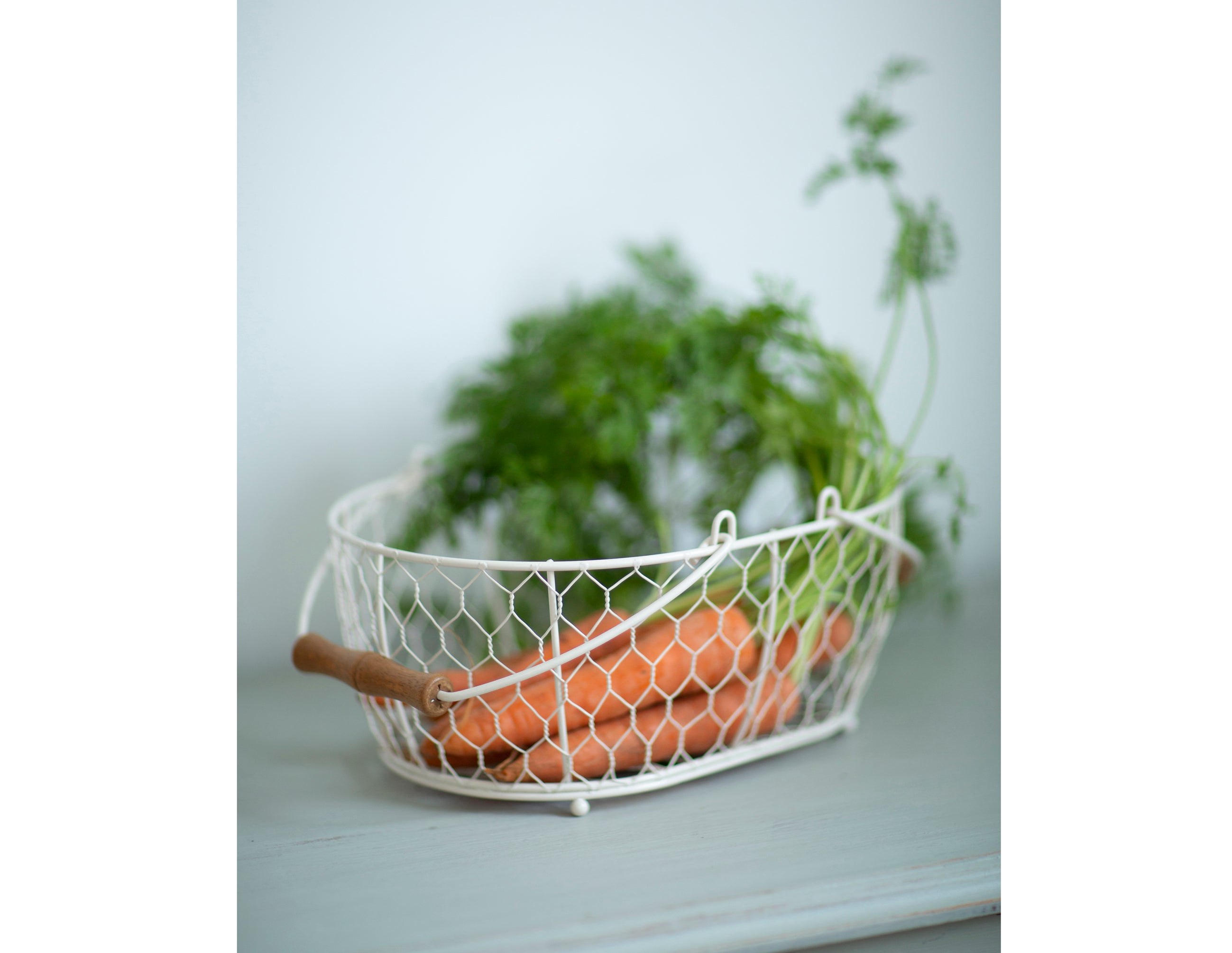 She continues: “Wicker works well for napkins, cutlery, and vegetables that don’t need to be refrigerated; glass and ceramics are ideal for dry ingredients.”