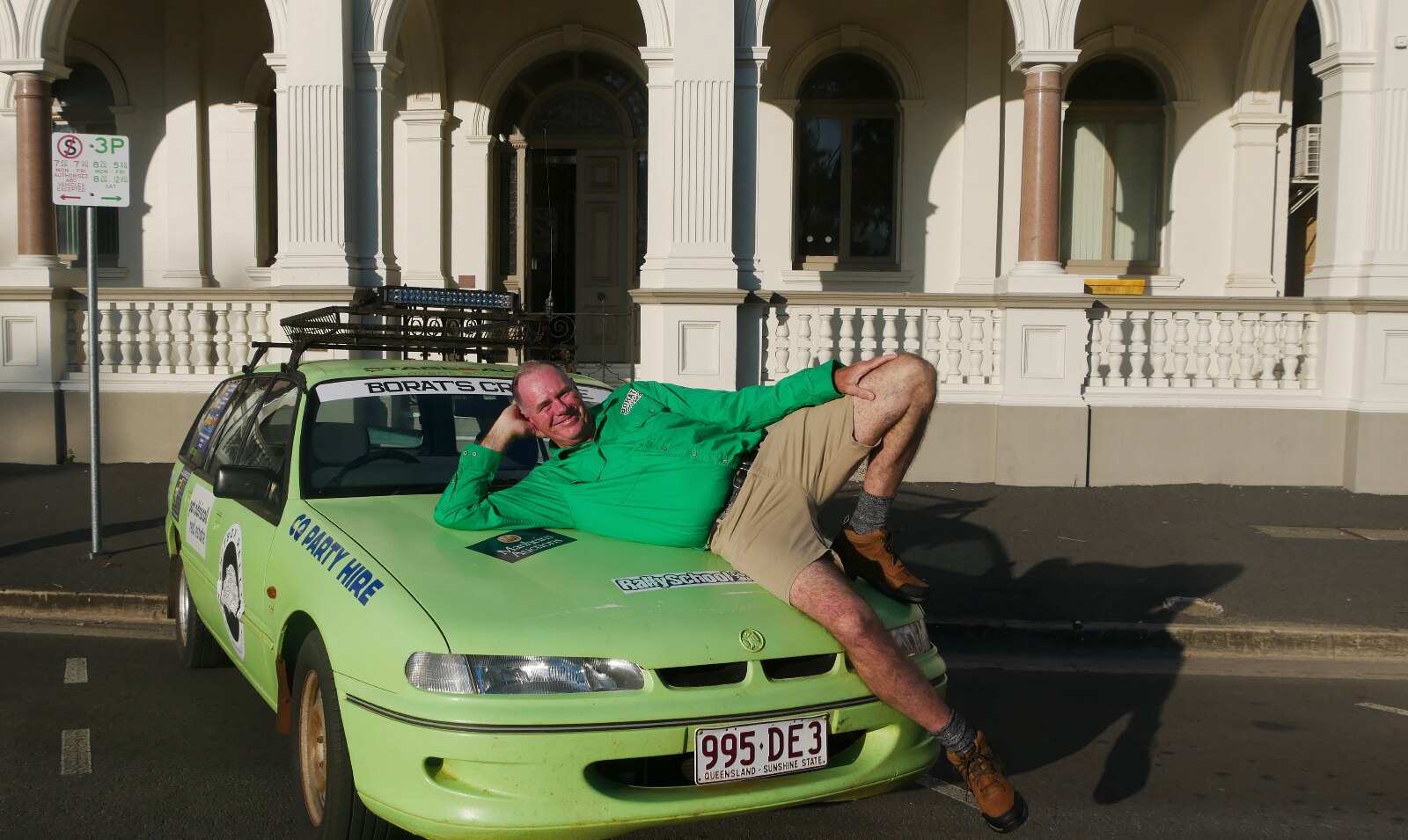 The Frog, containing Mr Richards and his Shitbox Rally partner, is one of 250 cars leaving Rockhampton today.