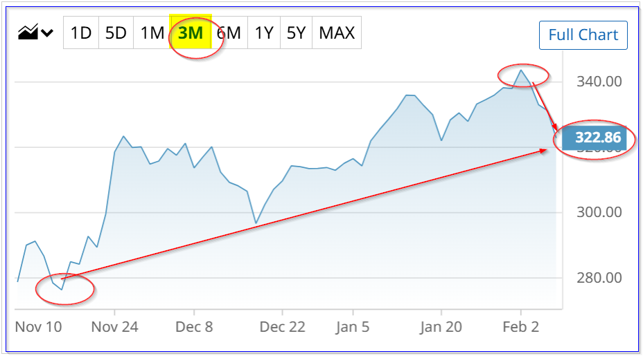 GOOGL closed at $322.86, down over 6% from its pre-earnings release peak of $343.69 on Feb. 2. However, it's still up 16.9% from a three-month low of $276.14 on Nov. 14, 2025.