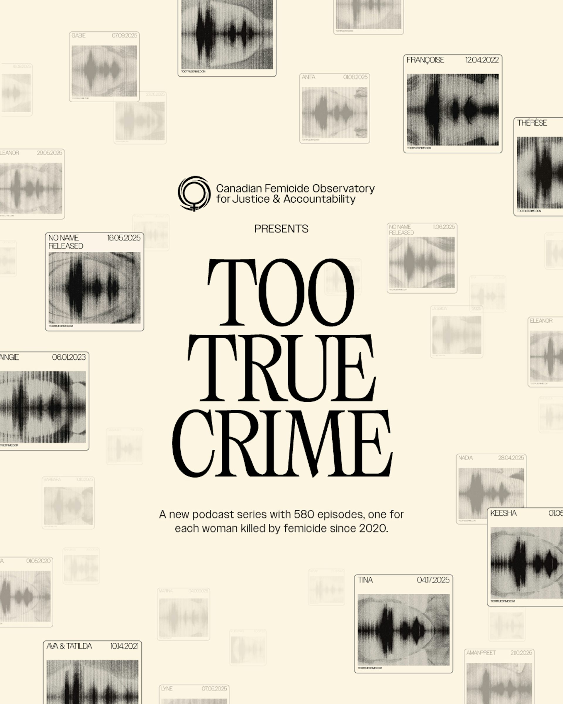 For these reasons, the Canadian Femicide Observatory for Justice and Accountability (CFOJA) launched its Too True Crime podcast on Nov. 25, 2025, the International Day for the Elimination of Violence Against Women. The podcast spotlights the stories of 580 women and girls killed by men in cases of femicide since 2020.