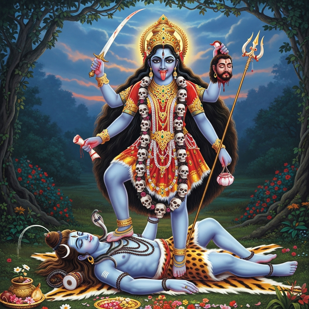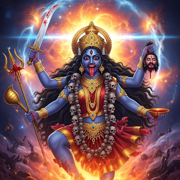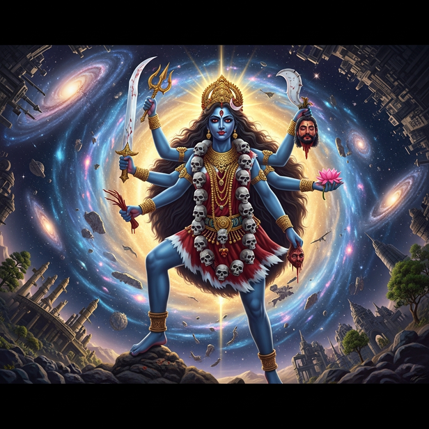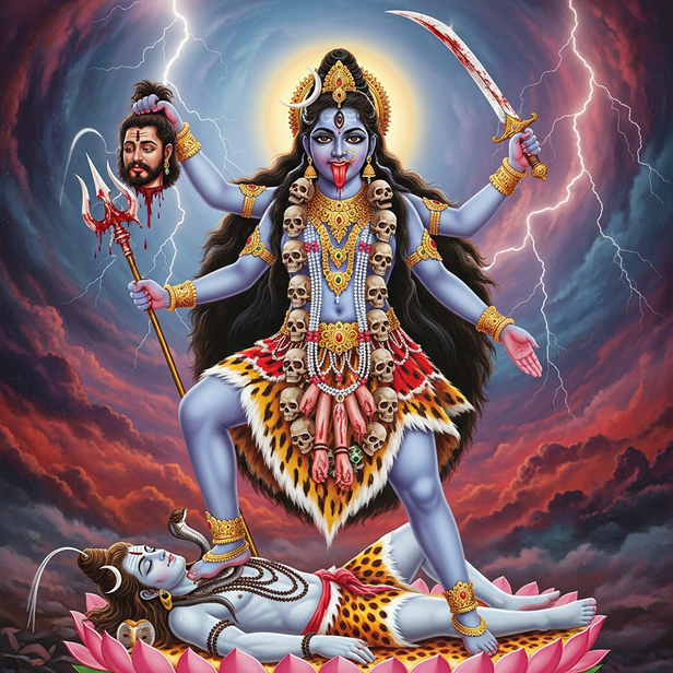 Time itself, Kala, is expressed by Kali. Time just rejects stasis; it does not despise creation. Eventually, everything that opposes change must vanish. This cosmic law appears in Kali's death. She guarantees the possibility of rebirth by terminating cycles that have reached their limit. Destruction turns into the beat that sustains life and motion.