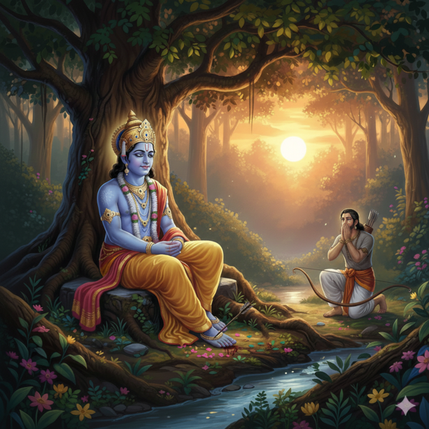 One of the most cryptic and tragic scenes in Indian mythology is the tale of Lord Krishna's departure from Earth. Why didn't Krishna, the supreme strategist of the Mahabharata and the guide of the Bhagavad Gita, block a mere hunter's arrow if He was God Himself? For what reason did the All Powerful decide not to defend Himself? Weakness is not at issue here. It has to do with purpose. It has to do with fate, karma, and fulfilling a divine purpose.