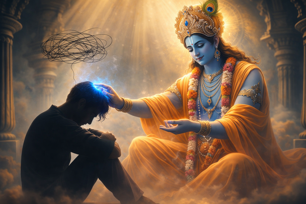 When night falls and silence deepens, the mind often grows restless. Thoughts replay, worries multiply, and loneliness feels heavier. Overthinking steals peace and fuels anxiety, making sleep and clarity elusive. The Bhagavad Gita offers guidance, showing that these restless moments are not weakness but signs of a soul seeking support and a mind searching for direction. Through Shree Krishna’s wisdom, mental chaos can transform into calm and strength. By practicing devotion, surrender, and mindful focus, even anxious minds can find lasting peace, clarity, and confidence.