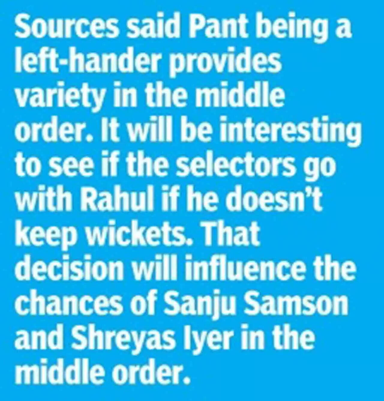 Sources said Pant being a left-hander provides variety in the middle order. It will be interesting to see if the selectors go with Rahul if he doesn't keep wickets. Sources also said that Rahul may be rested to be in shape for Champions Trophy.