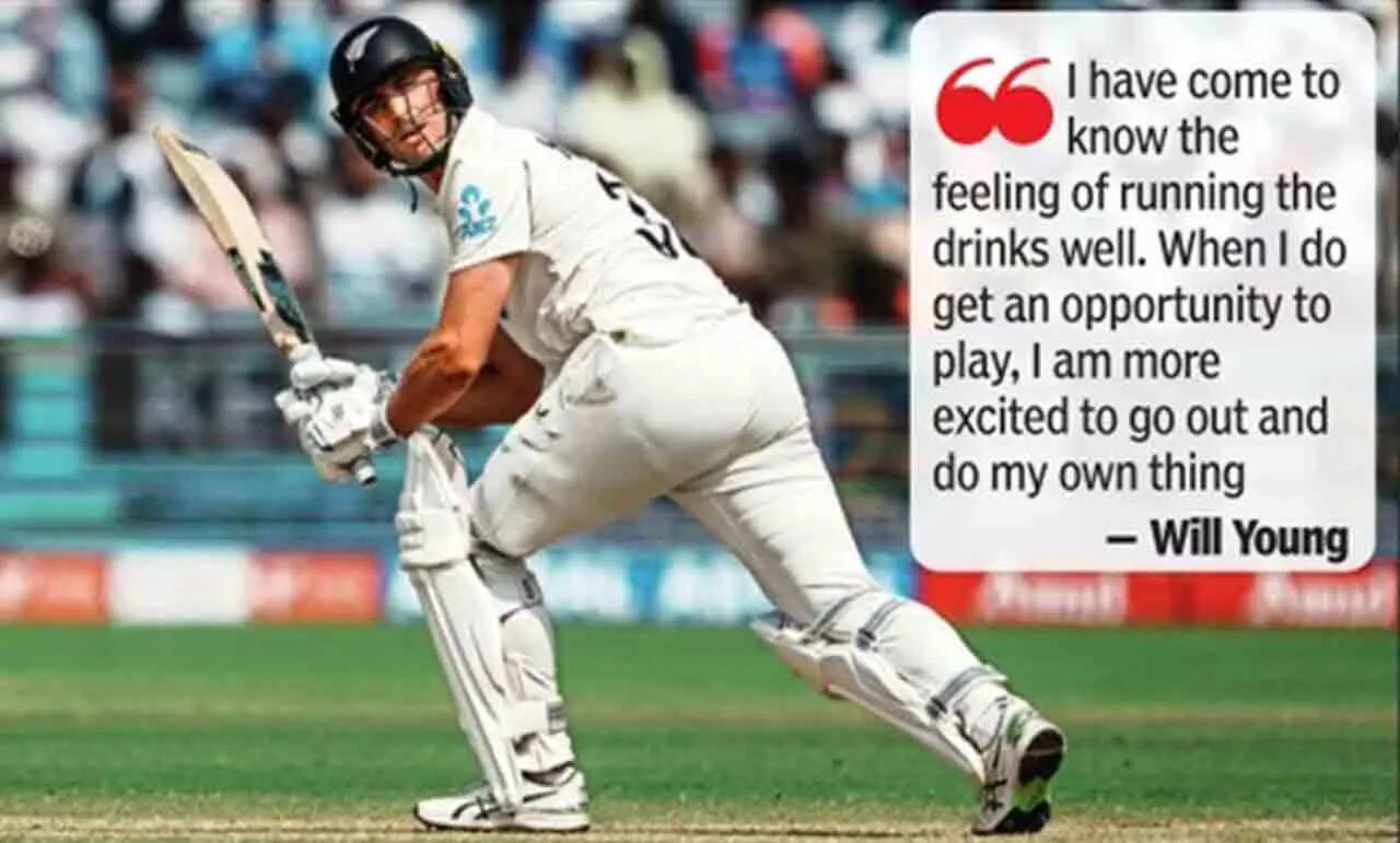 Not so young at 31 and only 16 Test matches old prior to coming to India, Young has often been reduced to playing waterboy for his team. He waited three years after his maiden call-up to make his Test debut against West Indies in Hamilton in Dec 2021. Even against India, he was a replacement for Kane Williamson, who didn't make the trip owing to a groin injury sustained in Sri Lanka.
