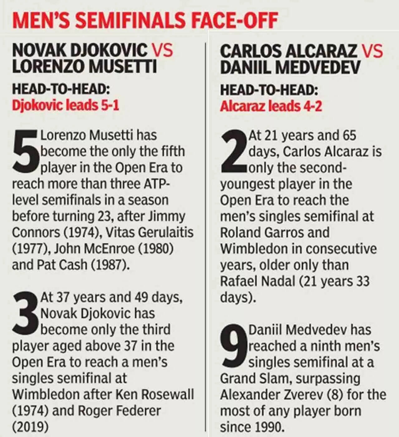 In the first of the last-four clashes -defending champion Carlos Alcaraz goes up against Daniil Medvedev in a replay of their US Open semifinals last September.