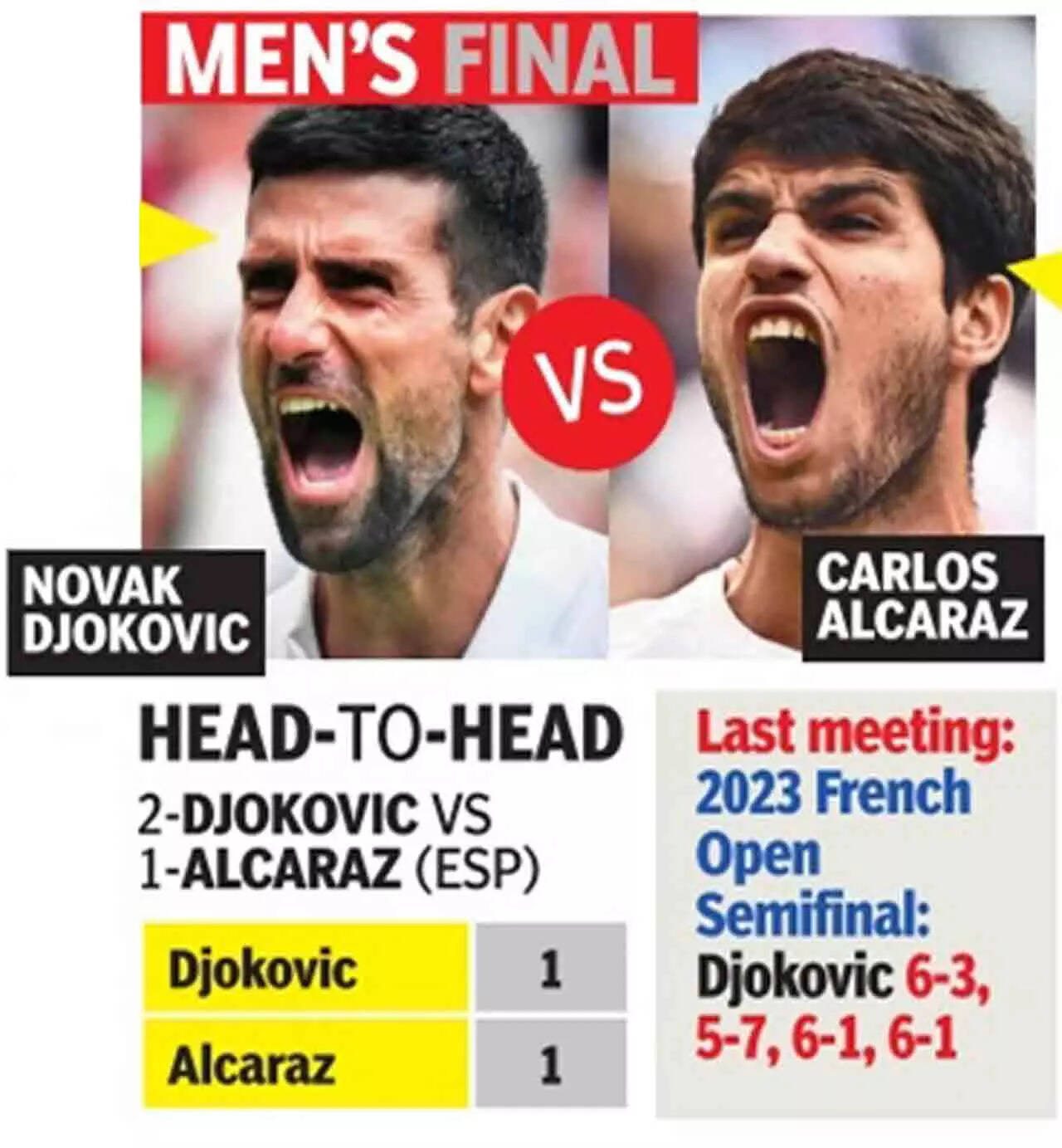 Alcaraz is the top seed, the world No. 1. He won a Grand Slam, the US Open last year. In a sense, the throne is his. "If I win, it would be amazing for me, not only to win a Wimbledon title, but to do it against Novak would be super special," he said, adding, "If you want to be the best, you have to beat the best. "