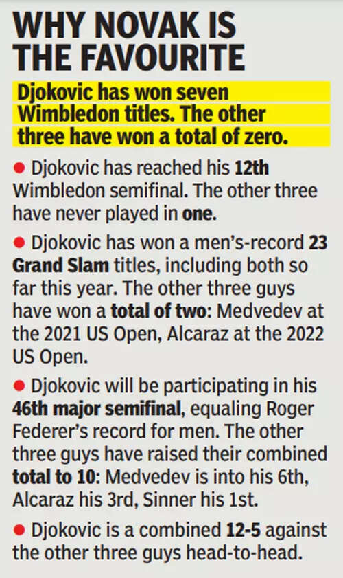 As things stand, Djokovic, seeded two, plays the eighth-seeded Jannik Sinner in the first semifinal on Friday. The top-seeded Alcaraz goes up against the third seed Daniil Medvedev.