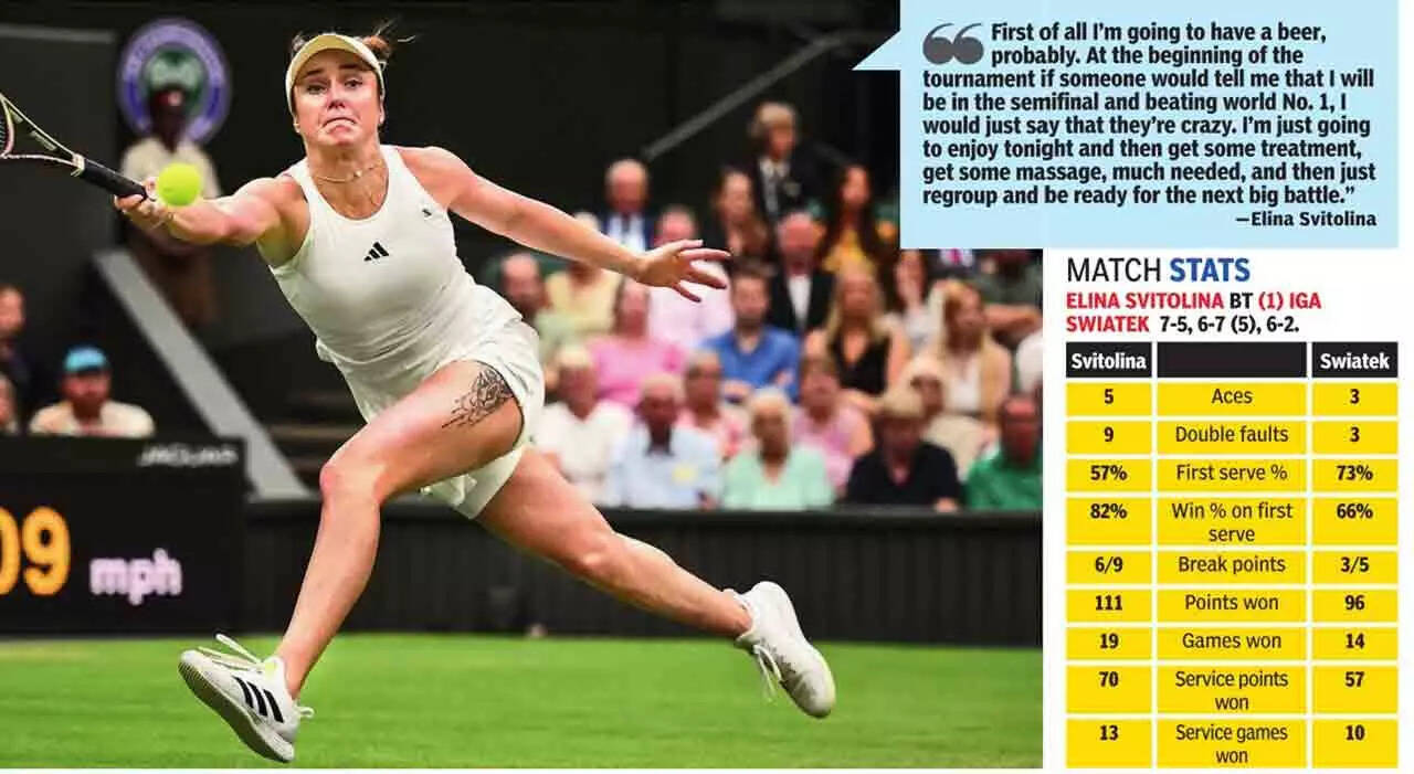 LONDON: Elina Svitolina had a baby nine months ago. When she returned to competition in April, her ranking was out of the top-1000. The Ukrainian played low-level ITF tournaments to get back to winning ways. S he came into Wimbledon on a wildcard.