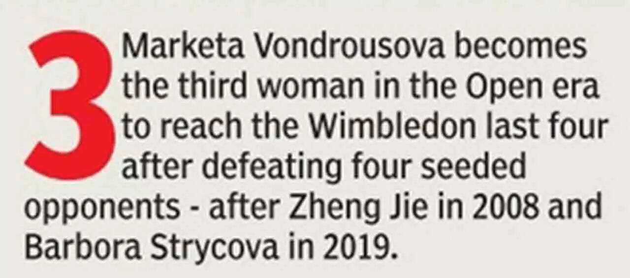 A huge fan of Harry Styles she'd probably hum Matilda as she sipped a mug. Rest and recuperation before the semifinals on Friday. Earlier, Vondrousova rallied from 1-4, 0-30 in the final set to put out the No. 4 seed Jessica Pegula 6-4, 2-6, 6-4. Italy's eighth-seeded Jannik Sinner made his first Grand Slam semifinals, when he topped the world No. 92 Roman Safiullin 6-4, 3-6, 6-2, 6-2 in a last eight clash.