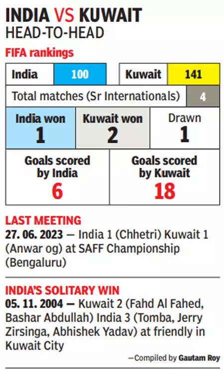 India’s only win against Kuwait came in 2004 when they won 3-2 in a friendly.