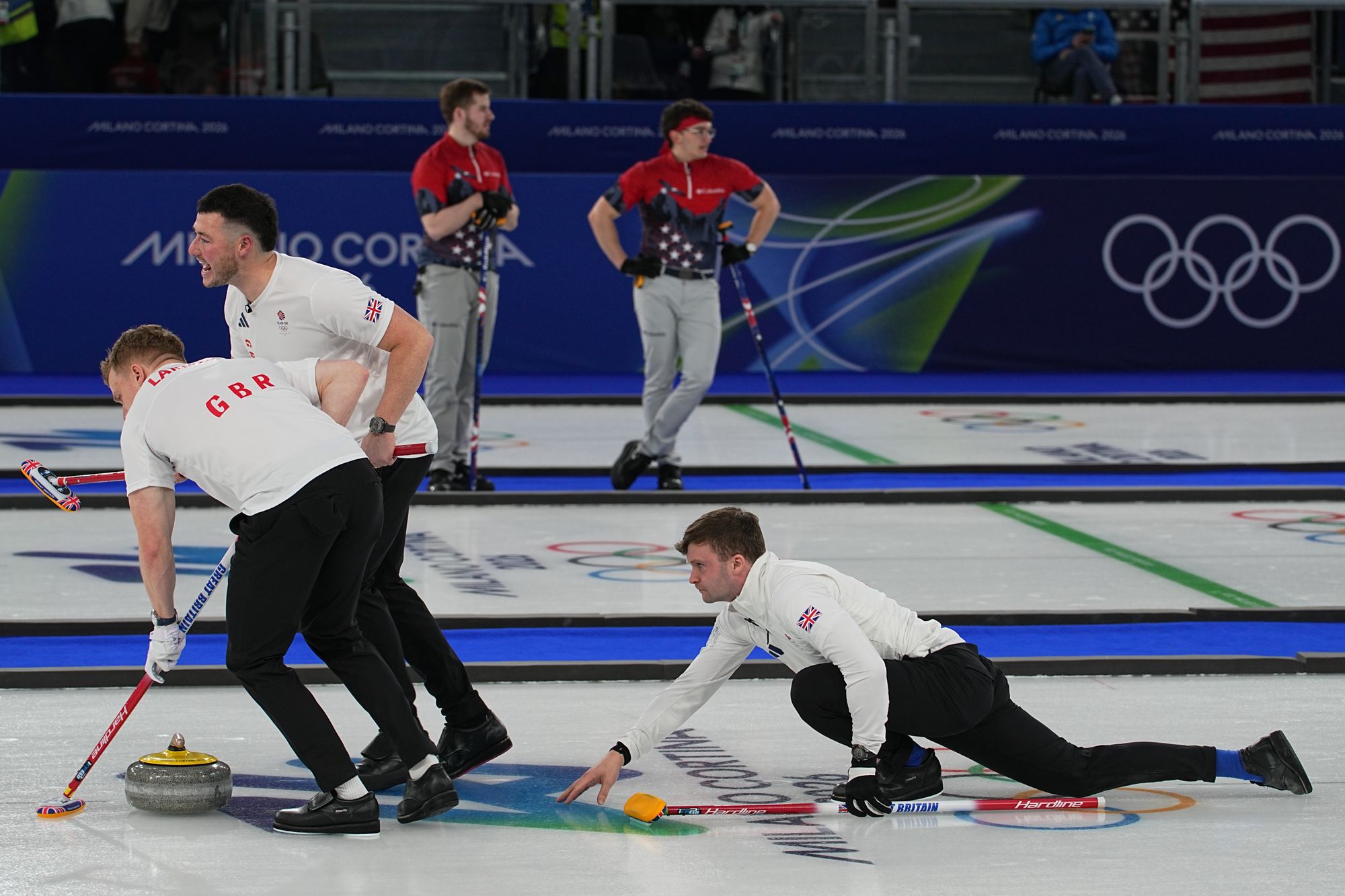 It was nearly two as Grant Hardie desperately swept at the end to try and send the US stone beyond the second British stone but not quite. A steal of one is stull good though. GB in control of this match early on