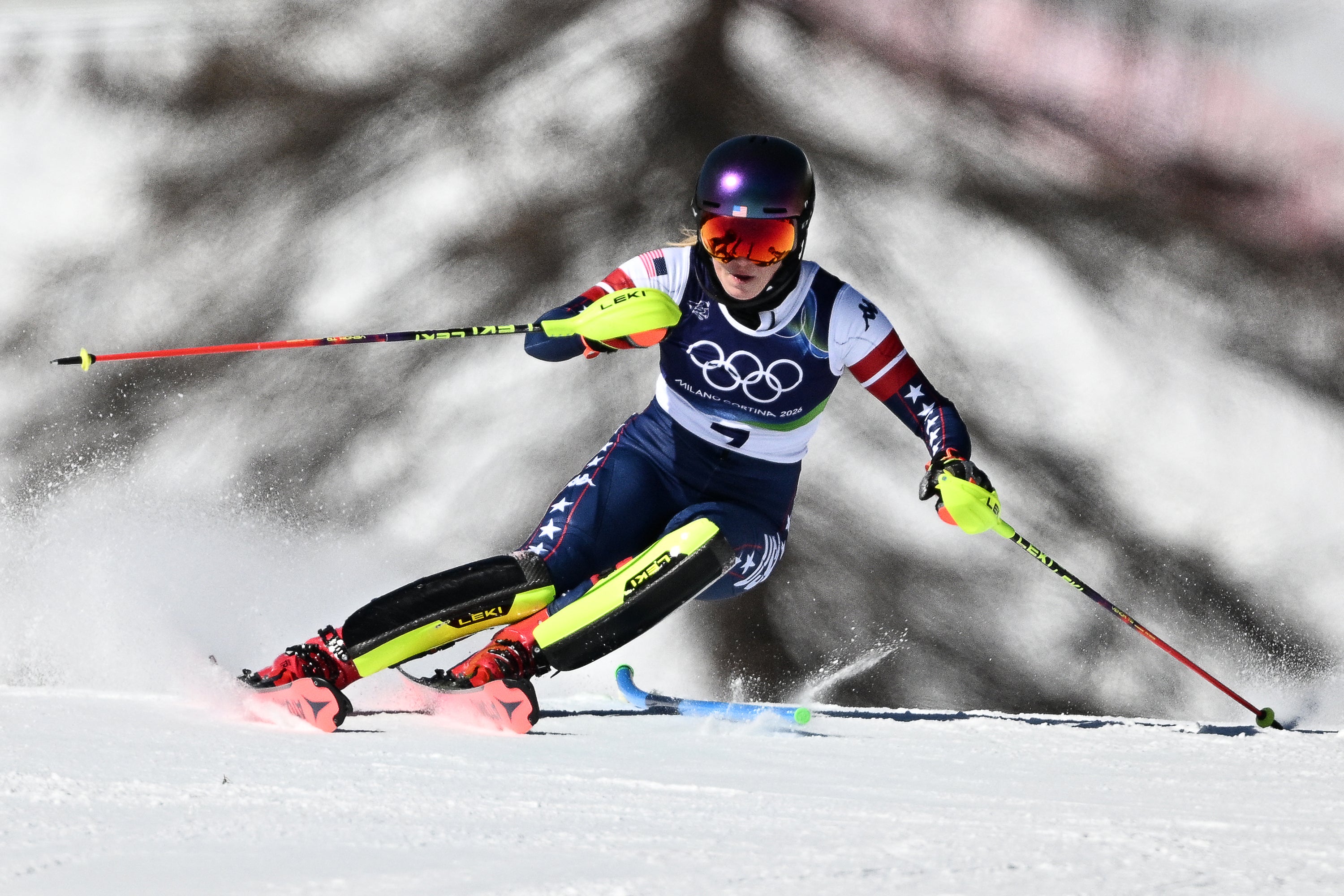 She’s competing in the women’s slalom – an event in which she has won 71 World Cup races throughout her storied career and the American is flying this.